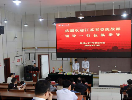 2024年4月24日,侨界代表人士国情考察团赴扬州大学中餐繁荣基地进行考察。江苏省委统战部一级巡视员宋琦,扬州市委常委、统战部部长丁四海,江苏省委统战部侨务综合处处长麻建科,扬州市委统战部常务副部长部长吉琳,江苏省委统战部侨务综合处三级调研员史文茹,扬州市侨办副主任庞春奎参与考察。扬州大学党委常委、副校长韩杰,扬州大学党委常委、统战部部长华清君,扬州大学旅游烹饪学院党委书记解小青,扬州大学中餐繁荣基地主任孟祥忍陪同考察。
